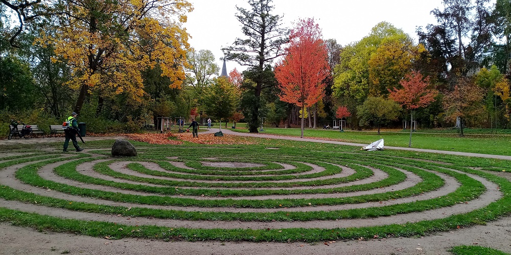 Der Ernst-Ehrlicher-Park erstrahlt in herbstlichen Farben und der Weg durchs Labyrinth wird freigepusstet.